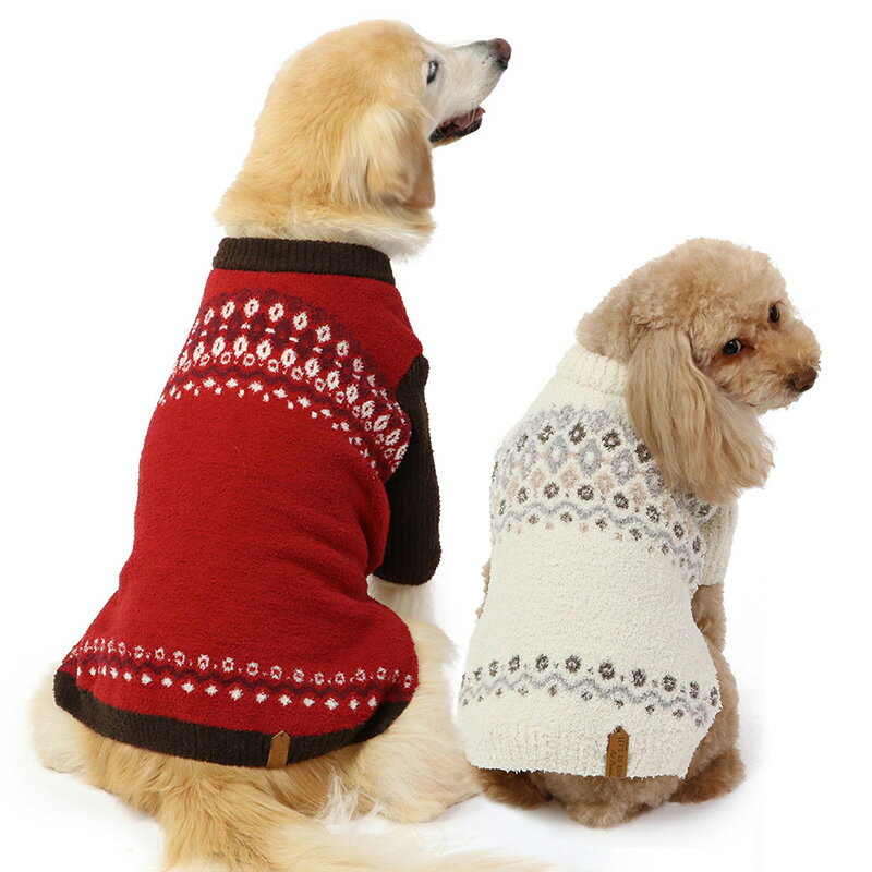 | 特性 | ノルディック柄の犬服セーター。こがたけんから 大型犬までさサイズ展開が豊富。 |